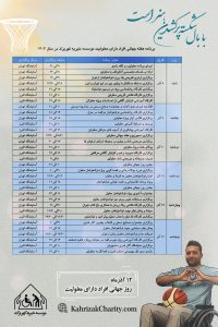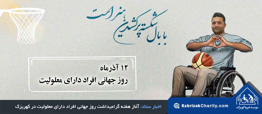 همزمان با فرارسیدن ۱۲ آذر، روز جهانی افراد دارای معلولیت، موسسه خیریه کهریزک ویژهبرنامههای فرهنگی، آموزشی و توانبخشی خود را در دو آسایشگاه تهران و البرز آغاز کرد؛ برنامههایی که با مسابقه بسکتبال با ویلچر بین تیم آسایشگاه کهریزک تهران و منتخب البرز افتتاح شد و تا ۱۳ آذر ادامه خواهد داشت.